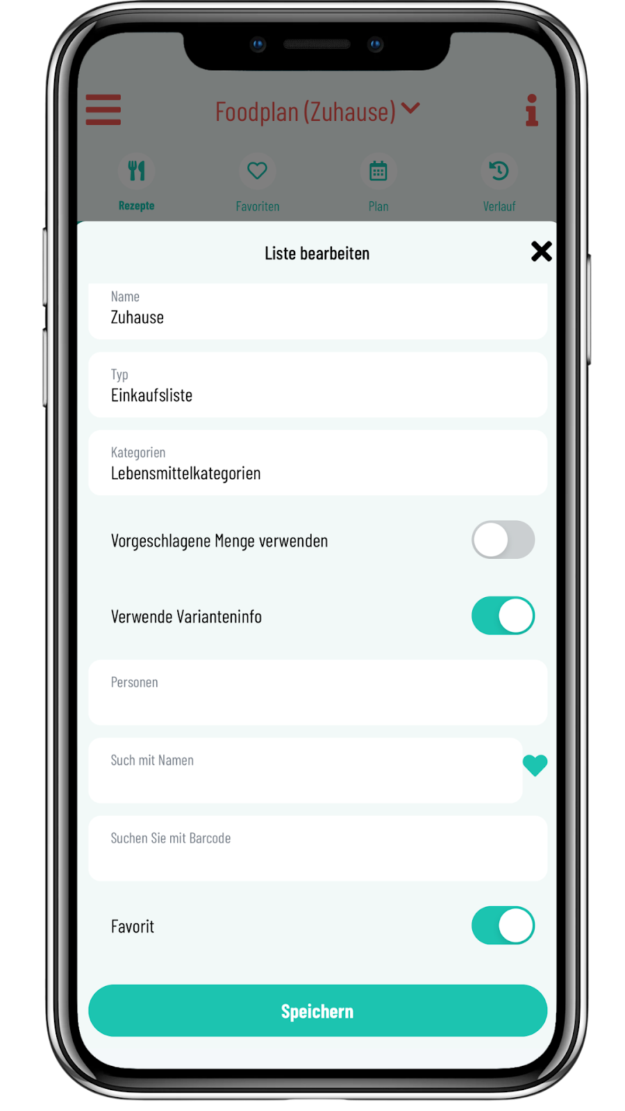 Im Bearbeitungsmodus deiner Listen kannst du ein paar Einstellungen vornehmen, um deine Rezepte, deinen Speiseplan und deine Einkaufs- bzw. Vorratsliste ganz einfach nach deinen Bedürfnissen anzupassen.