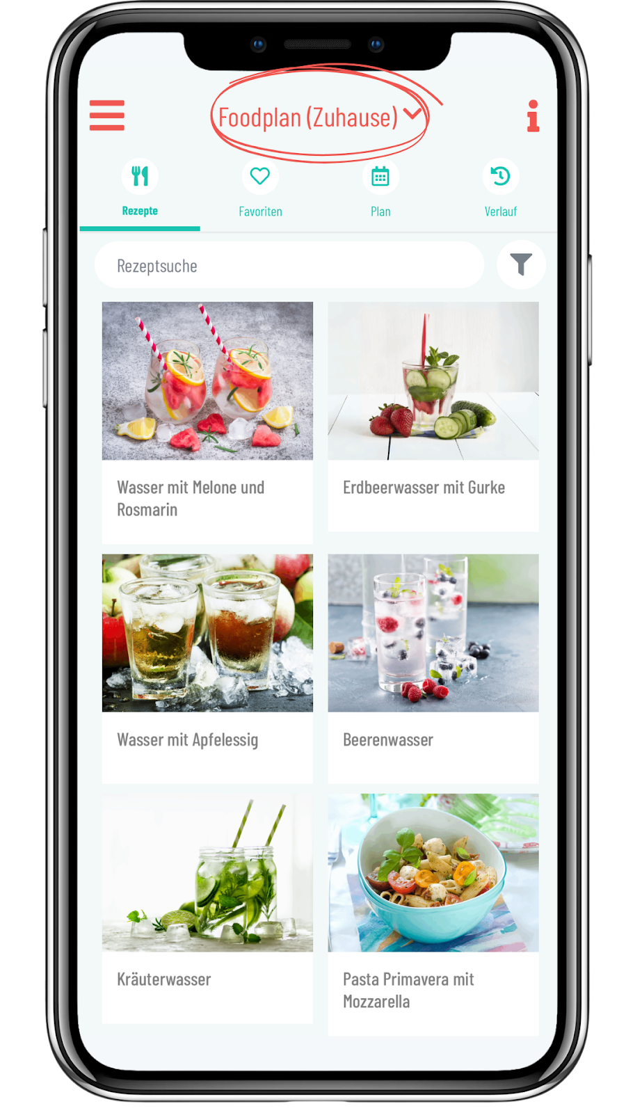 - Tippe oben im Foodplan auf den Namen deiner Liste oder gehe im Hauptmenü auf “Liste auswählen”.